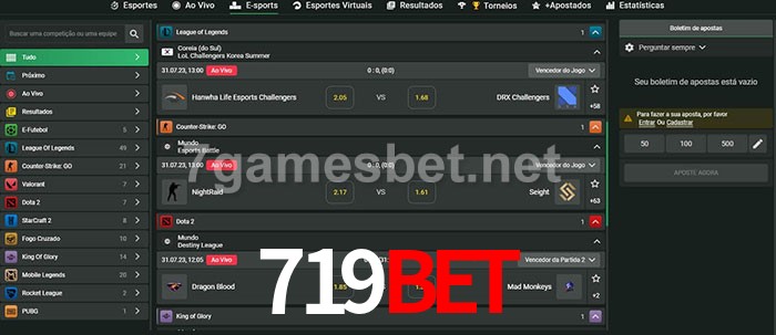 O 719bet oferece uma grande seleção de opções de apostas em e-sports com probabilidades competitivas